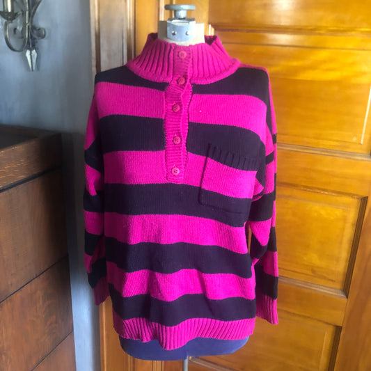 LA Blues Pink And Black Striped Pullover Sweater 1980's Vintage Size L