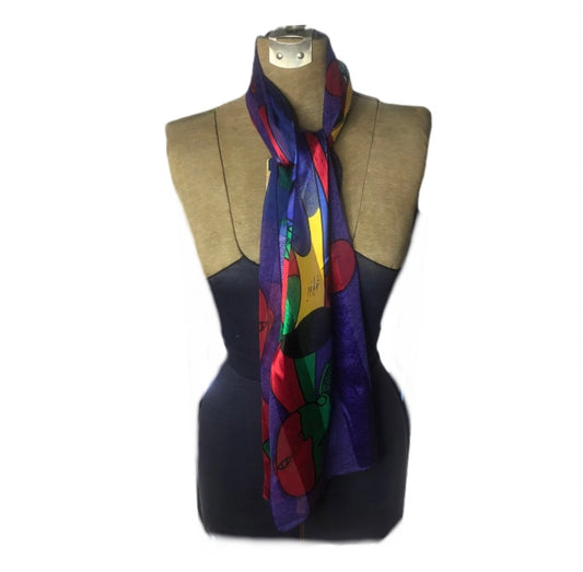 Purple Picasso Scarf 61in x 13 1/2in Unbranded Colorfull Hand Rolled Hem Vintage