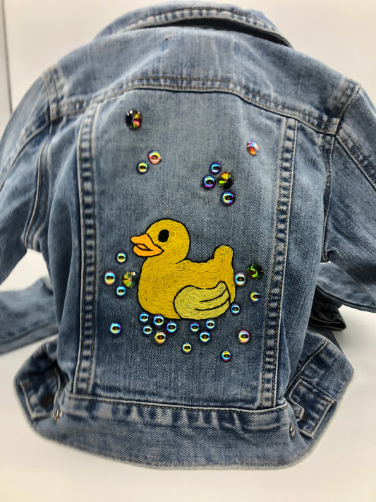 Rubber Ducky Hand Embroidered and Rhinestoned Child XS Jean Jacket
