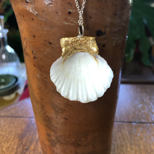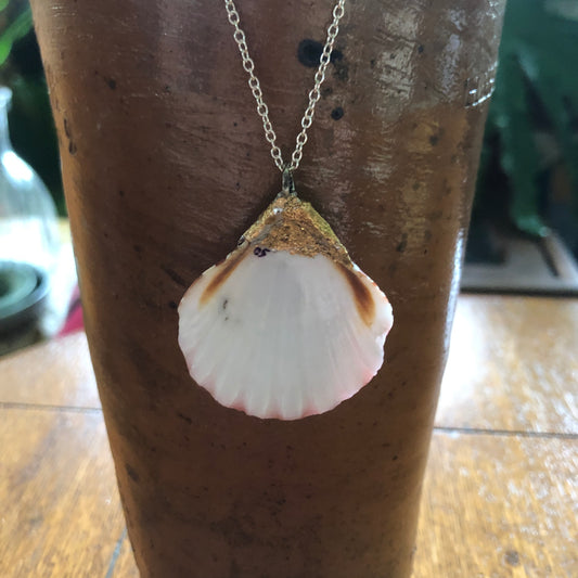 Scallop Shell Artisan Made Pendant Handcrafted Sea Shell Necklace 1 3/8in x 1 3/4in