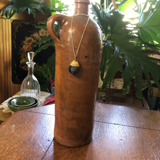 Artisan Made Rock Pendant Resembles Hematite Handcrafted Necklace 1in x 3/4in
