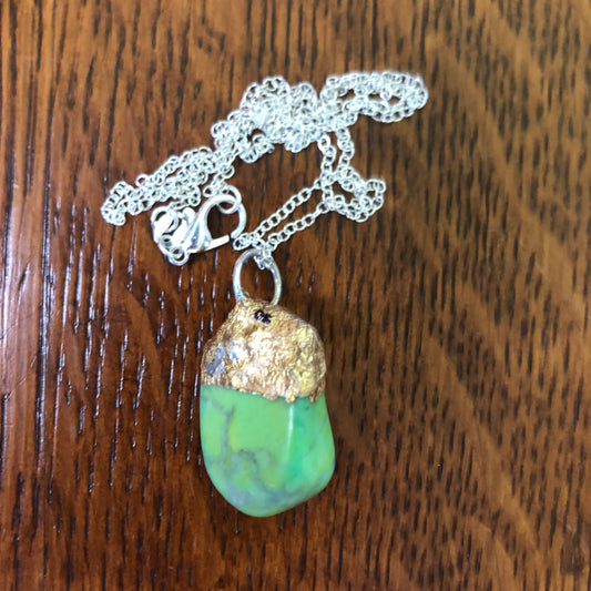 Artisan Made Green Rock Pendant Resembles a Gaspeite Handcrafted Necklace 1in x 1/2in
