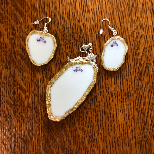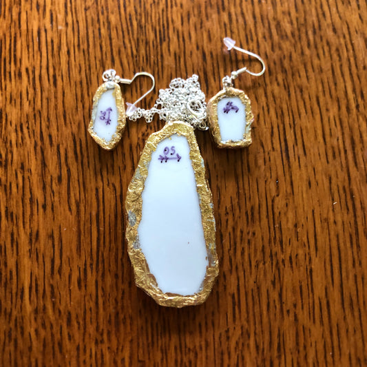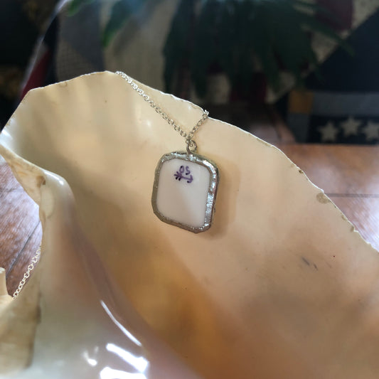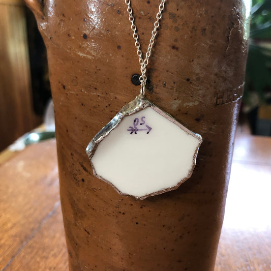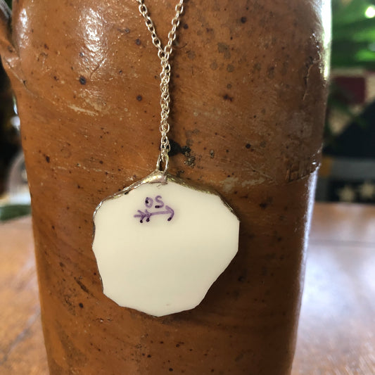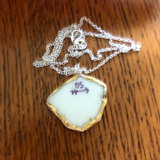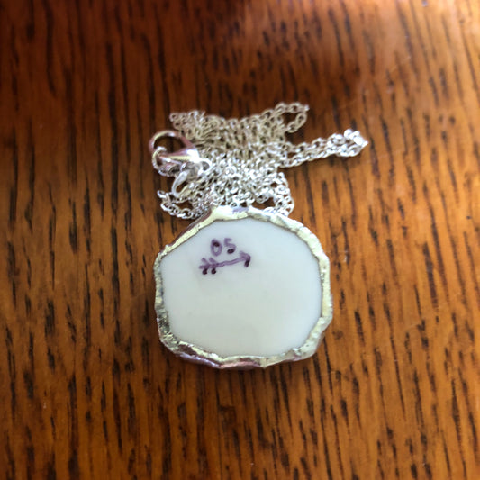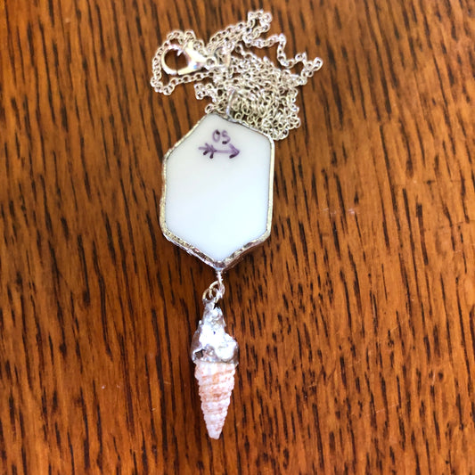Broken Pottery Artisan Made Orchid Flower Cerith Shell Pendant Hawaii Collectors Plate Handcrafted Necklace 1.5in x 3in