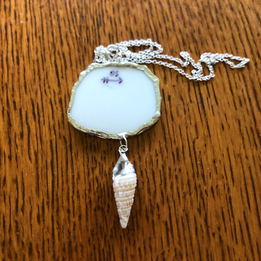 Broken Pottery Artisan Made Orchid Flower Cerith Shell Pendant Hawaii Collectors Plate Handcrafted Necklace 2.75in x 7/8in