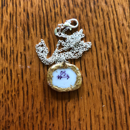 Broken Plate Artisan Made Pendant Corelle Butterfly Gold Plate Handcrafted Necklace 3/4in x 1in