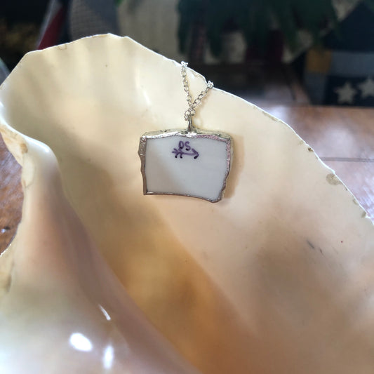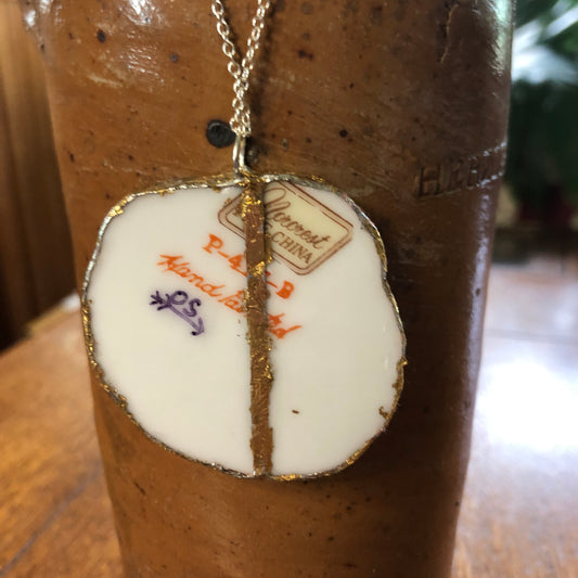 Broken Pottery Artisan Made Pendant Royal China Plate Handcrafted Necklace 1.25in x 1in