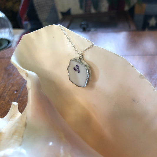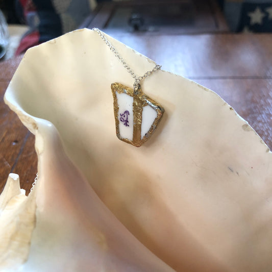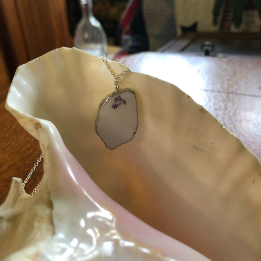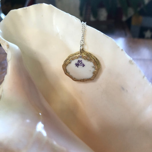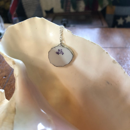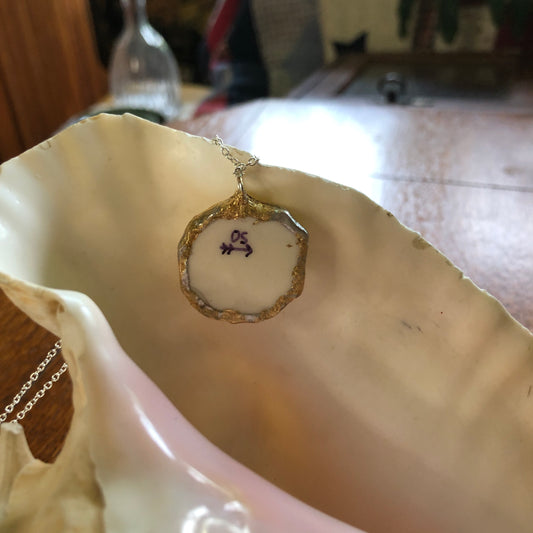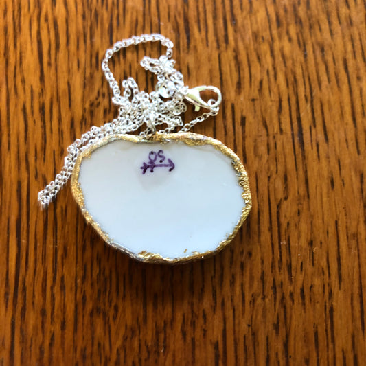 Broken Pottery Artisan Made Pendant Royal China Plate Handcrafted Necklace 1in x 7/8in