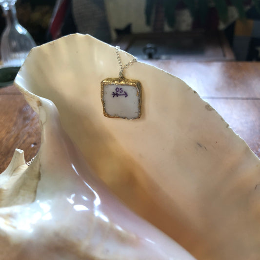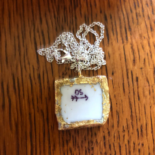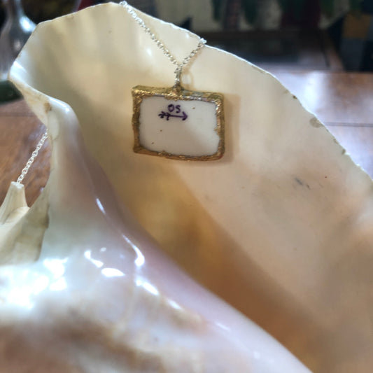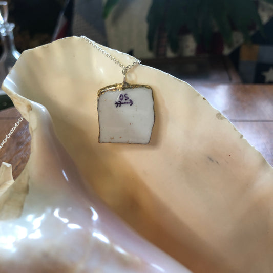 Broken Pottery Artisan Made Pendant Royal China Plate Handcrafted Necklace 1in x 1in