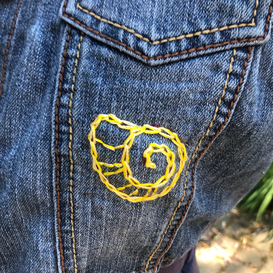Up Cycled Jean Jacket Size M, One of a Kind Embroidery Design, Vintage Denim, Hand Embroidered Art Work, Size Medium Jacket,