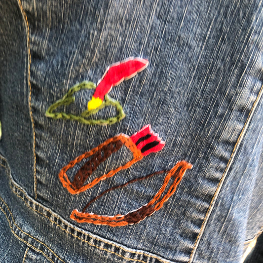 Stuffed With Fluff Upcycled Jean Jacket Hand Embroidered Size Small