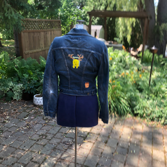 Wanted Upcycled Jean Jacket Hand Embroidered Size Medium