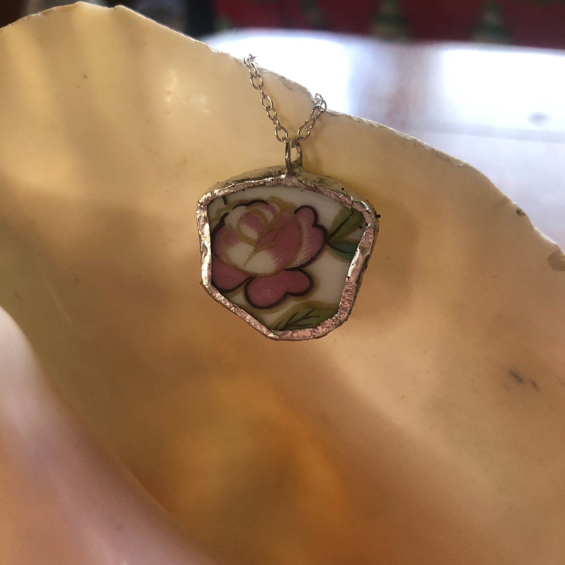 Broken Pottery Artisan Made Pendant Aladdin Fine China Fantasia Occupied Japan Plate Handcrafted Necklace 1 in x 1 in
