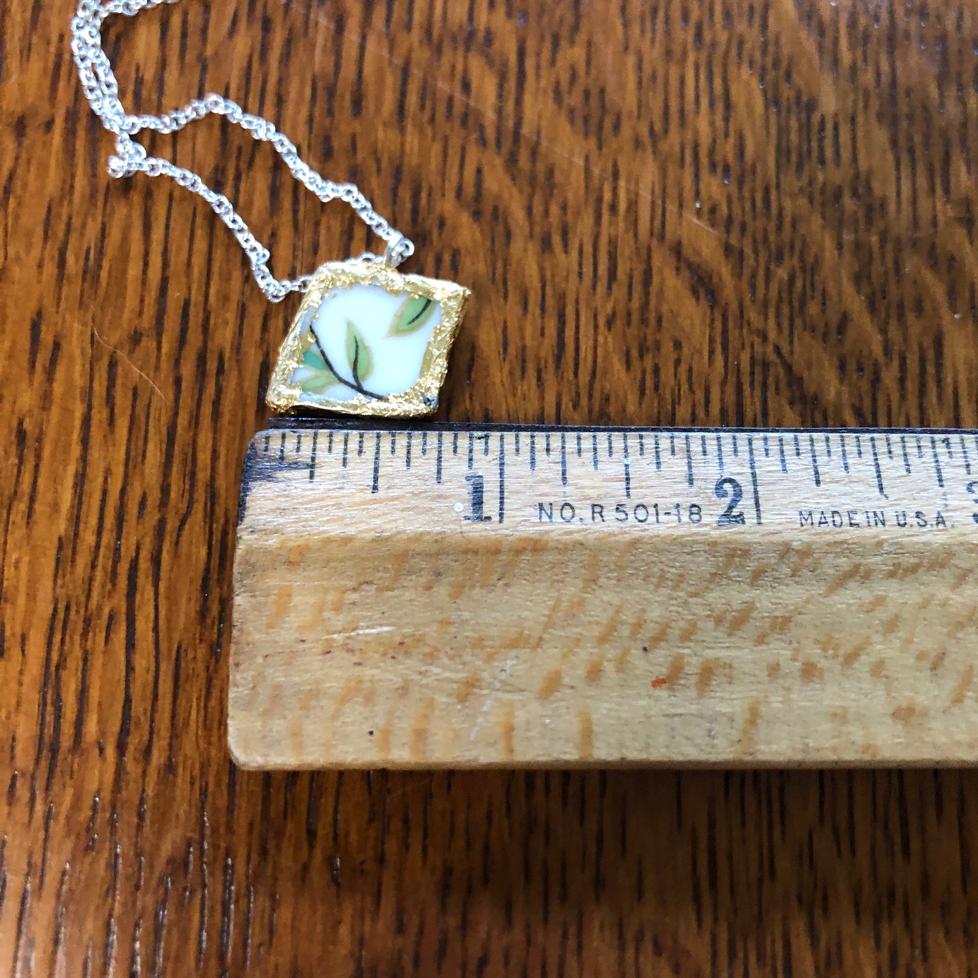 Broken Pottery Artisan Made Pendant Aladdin Fine China Fantasia Occupied Japan Plate Handcrafted Necklace 3/4in x 5/8in
