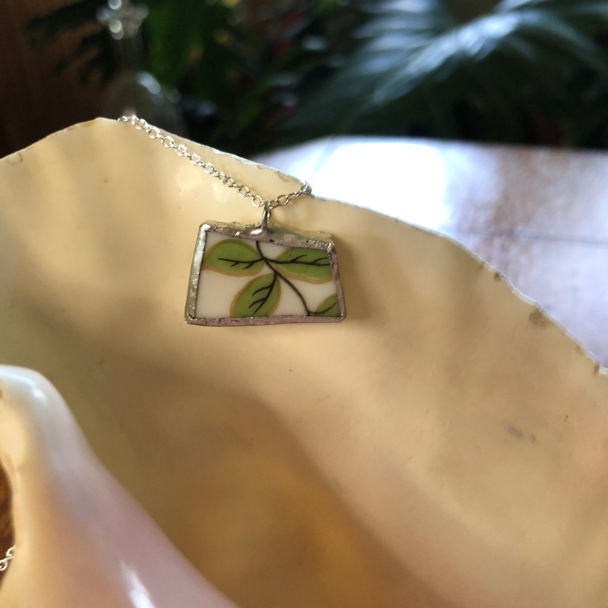 Broken Pottery Artisan Made Pendant Aladdin Fine China Fantasia Occupied Japan Plate Handcrafted Necklace 1in x 5/8in