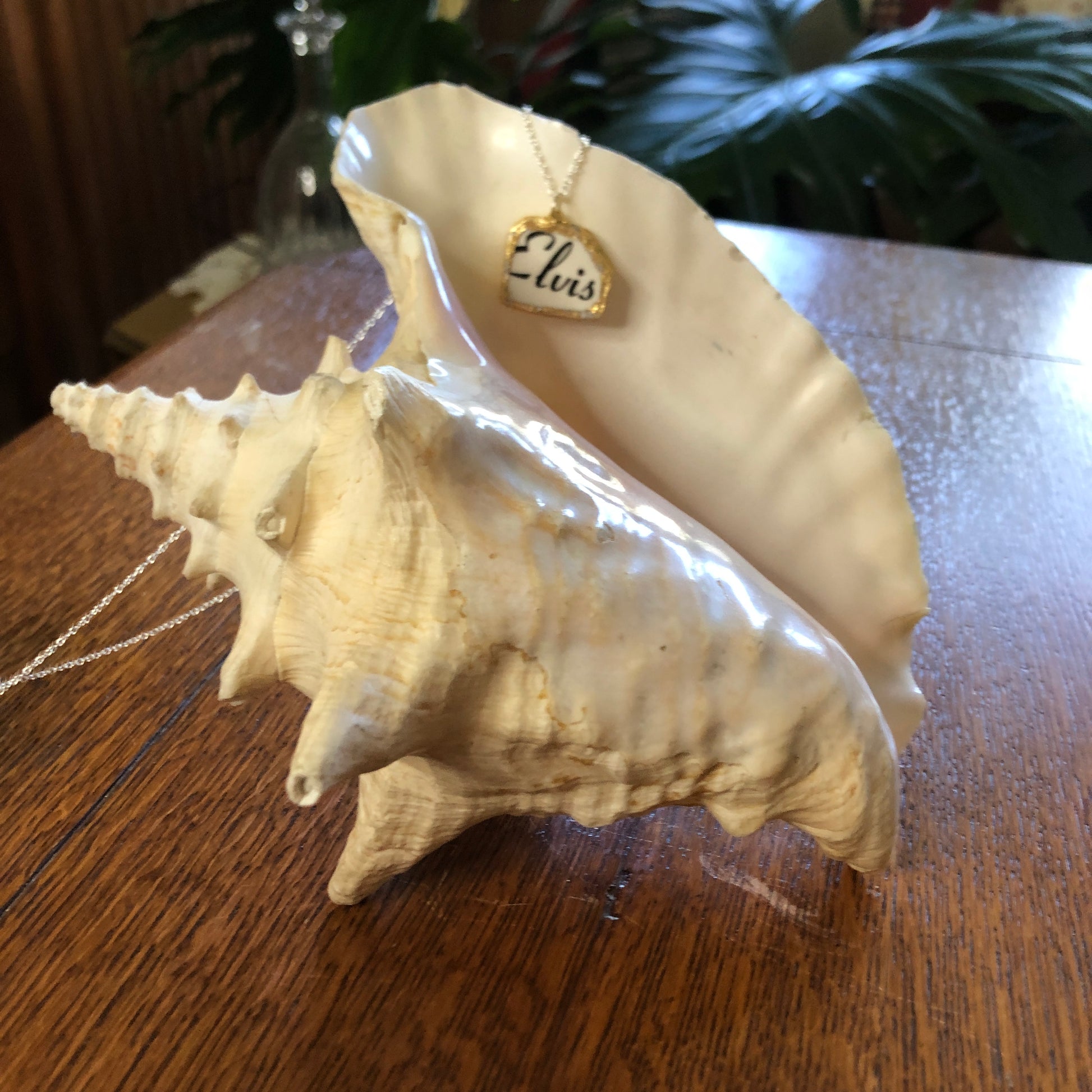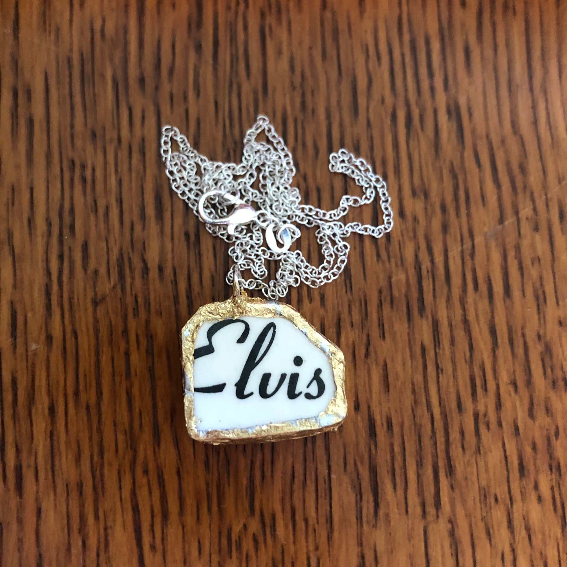 Broken Pottery Artisan Made Pendant Elvis Collector Plate Handcrafted Necklace 1in x 7/8in