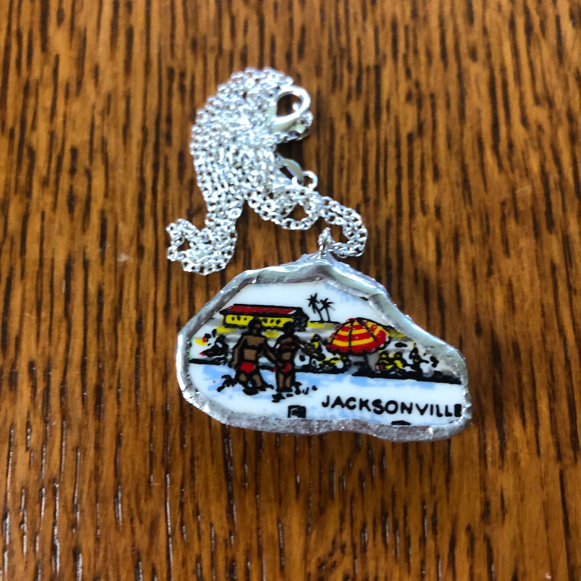 Broken Pottery Artisan Made Jacksonville Pendant Florida Collectors Plate Handcrafted Necklace 1.5in x 1in