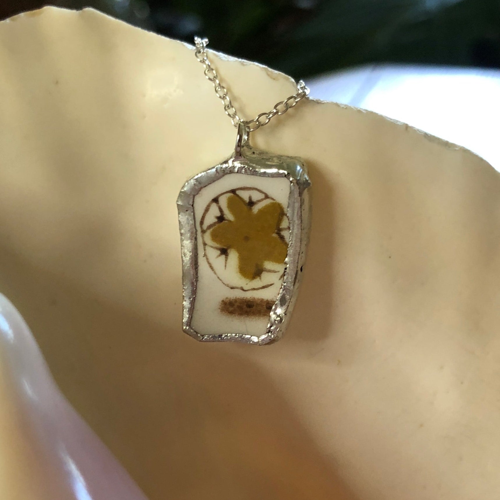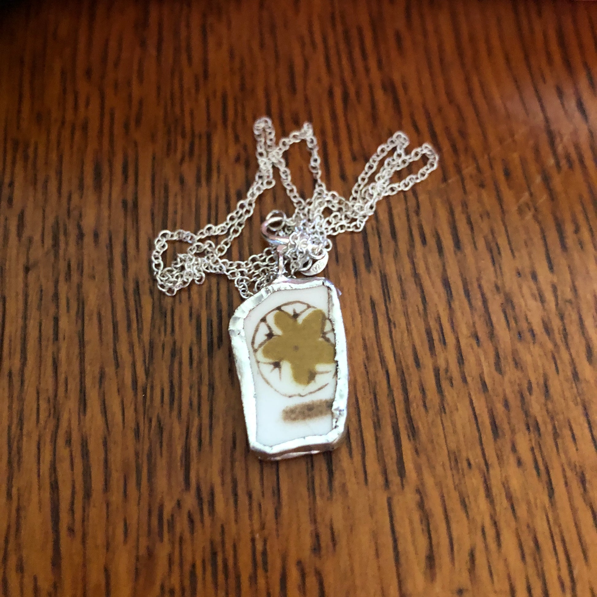 Broken Pottery Artisan Made Tiki Room Pendant Ceramic Guild Esperanto Plate Handcrafted Necklace 5/8in x 1in