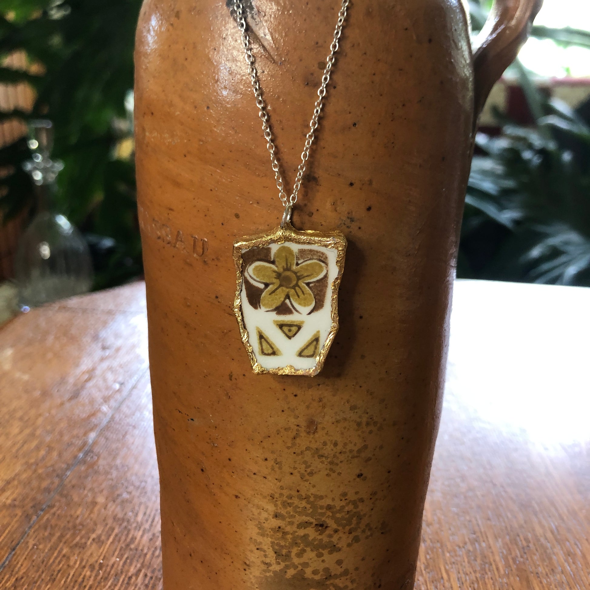 Broken Pottery Artisan Made Tiki Room Pendant Ceramic Guild Esperanto Plate Handcrafted Necklace 1in x 1.25in